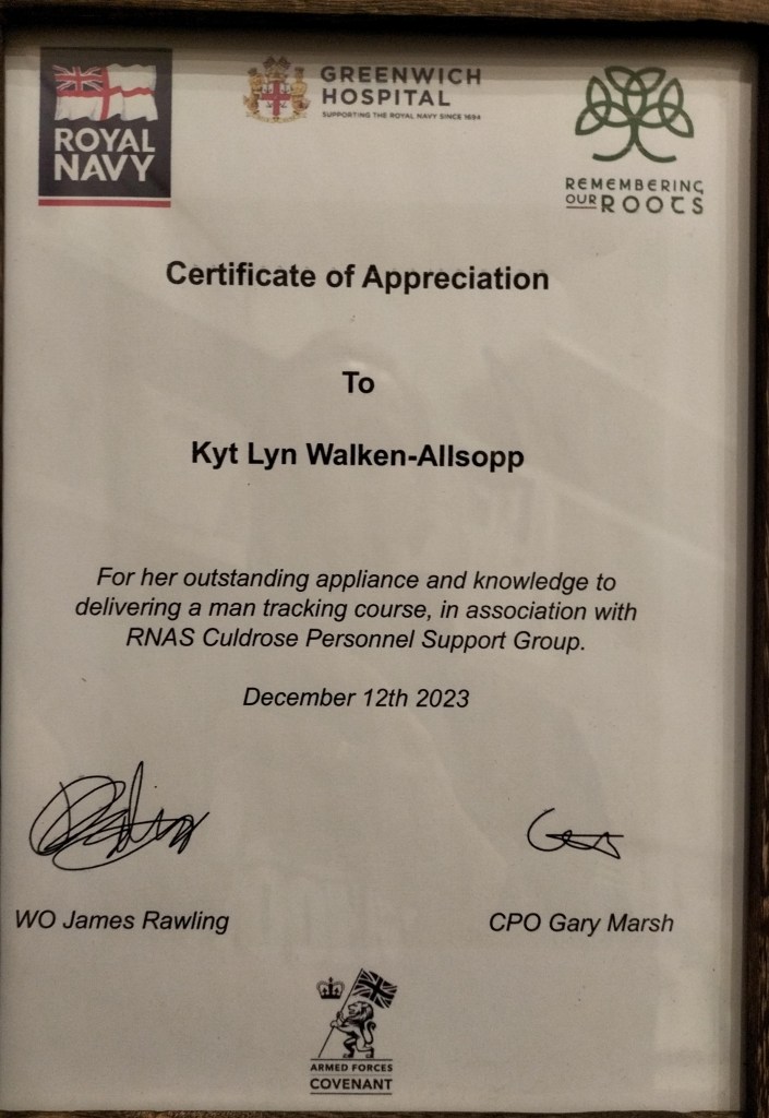 “Great class on the fascinating world of Mantracking“, Simon T., Royal Navy Paramedic, U.K.