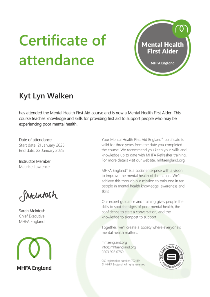 MENTAL HEALTH FIRST AIDER FOR MHFA ENGLAND